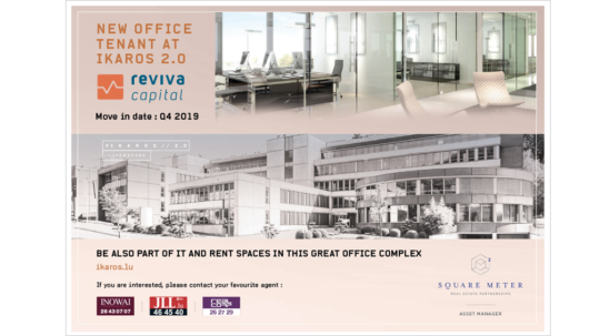 16/09/2019The first tenants arrive at the office complex IKAROS 2.0 The office complex IKAROS 2.0 is now ready to enter its second lifecycle : SQUARE METER is really happy to welcome the first tenants who have chosen this great office complex to run their businesses......